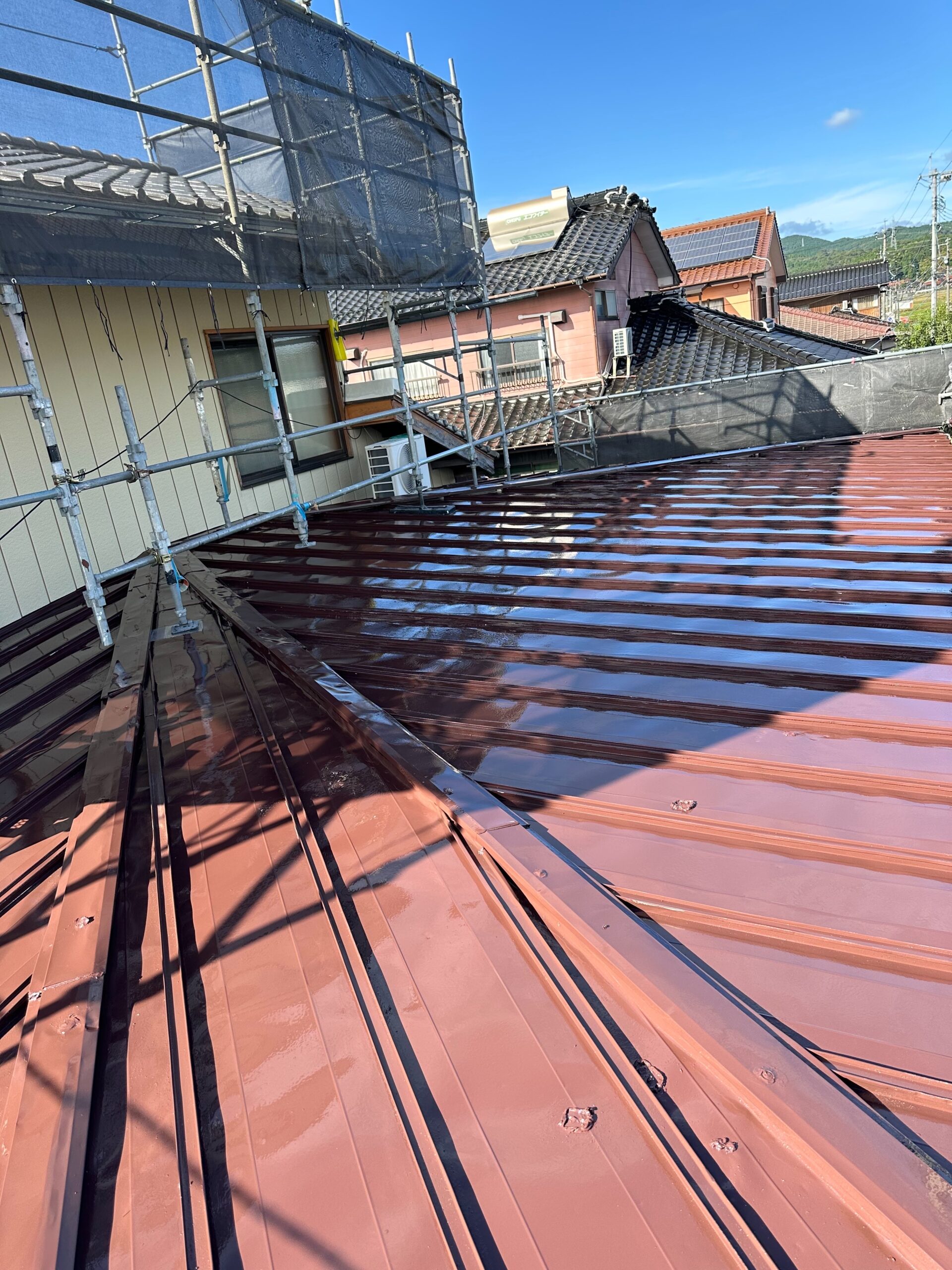 さらに近年注目されているのが「遮熱塗装」です。夏の強い日差しで室内が暑くなる、2階が特に暑いといったお悩みはありませんか?遮熱塗装は太陽光の熱を反射することで屋根表面の温度上昇を抑え、室内を快適に保つ効果があります。エアコンの効率も向上し、電気代の節約にもつながります。特に工場や店舗、2階建て以上の建物では効果を実感しやすく、お客様のご要望に応じてご提案しています。